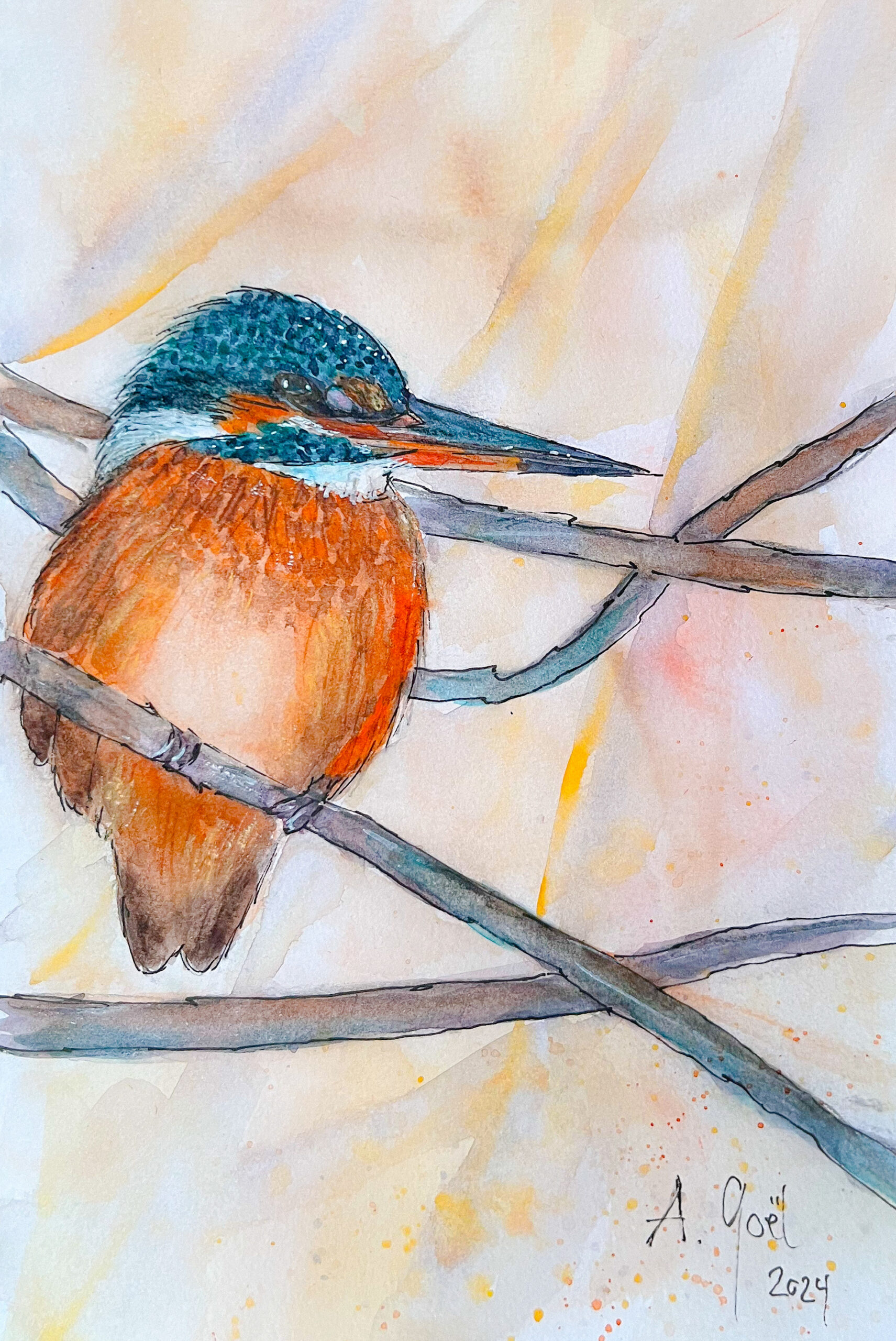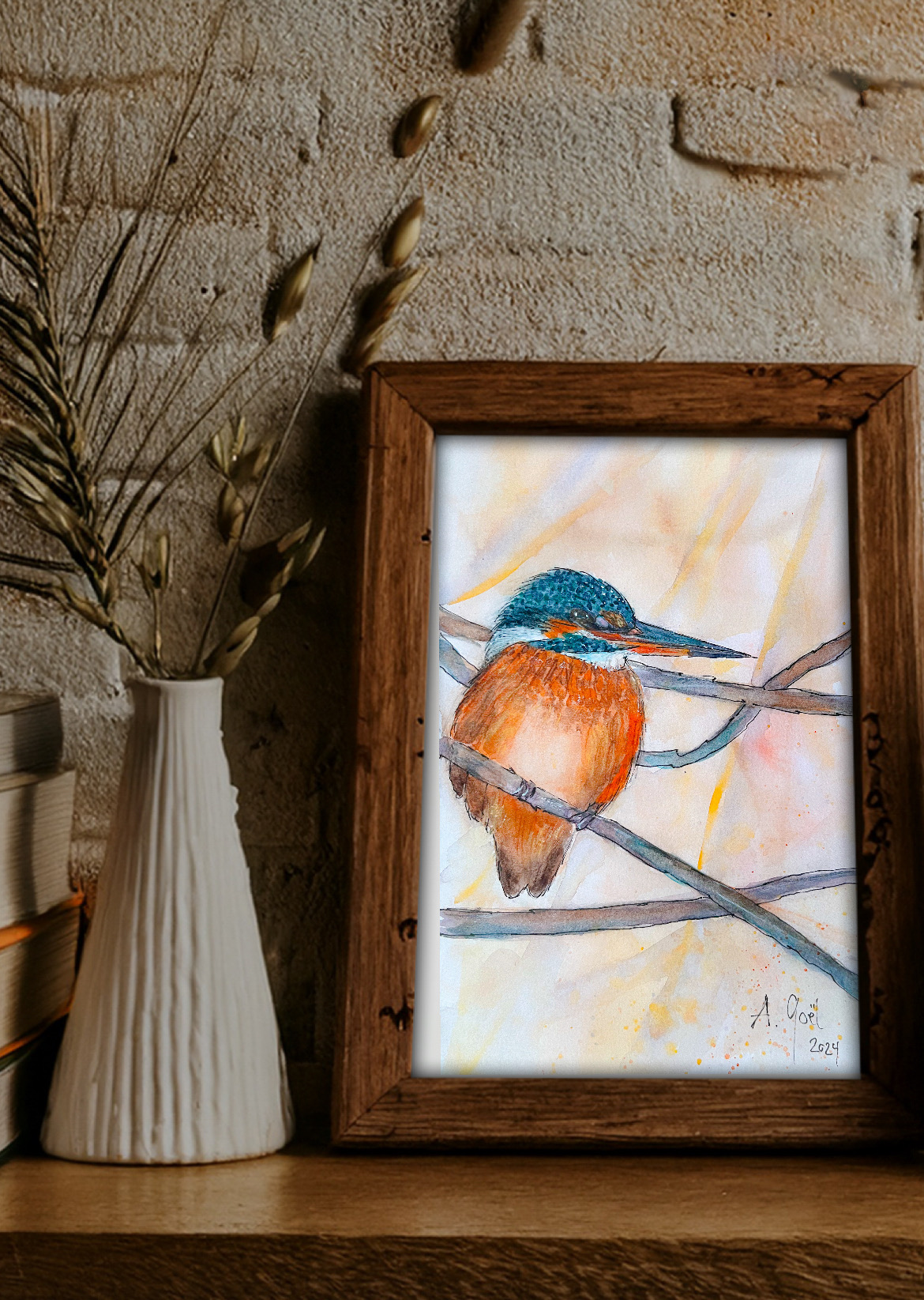 Impression Fine Art en édition limitée, tirée d’une aquarelle originale « Martin pêcheur »